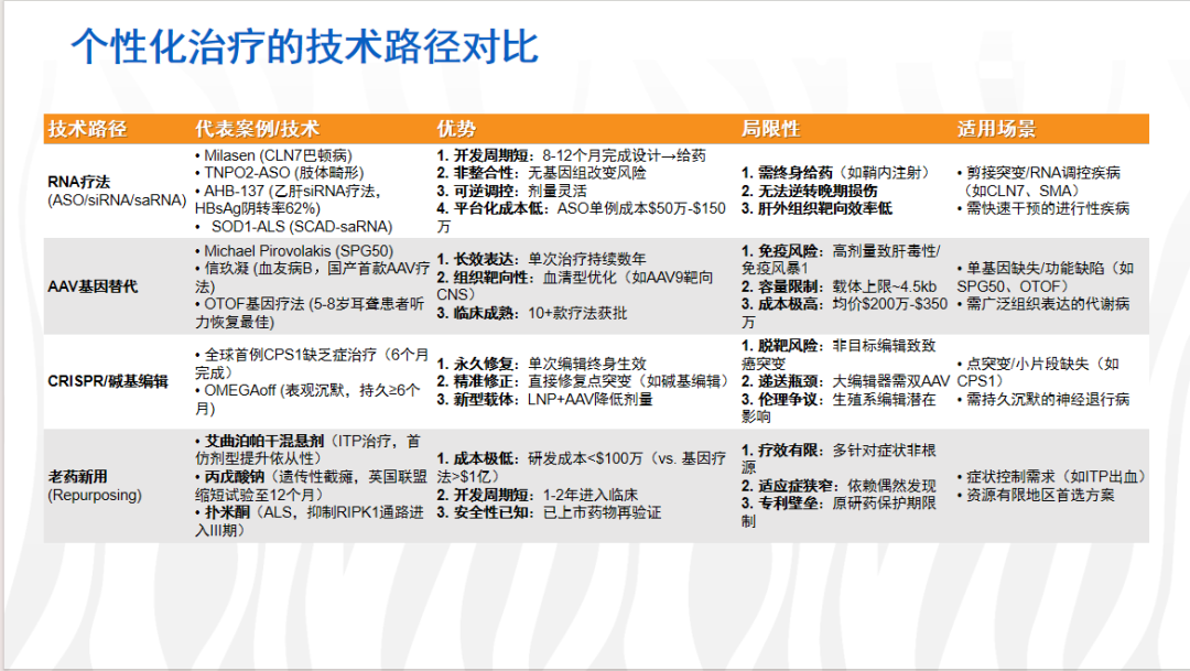 个性化治疗的技术路径已形成多元布局,各有其适用场景与突破。