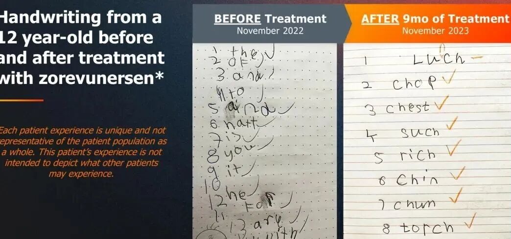 而就在本月初,国际顶尖医学期刊《新英格兰医学杂志》(The New England Journal of Medicine,简称NEJM)发表了一项重磅研究,让一款名为 Zorevunersen (中文:佐雷武纳森 或 佐尼韦森,研发代号STK-001)的靶向RNA新药走入公众视野,其不仅能让癫痫发作频率最高下降 91%,更能逆转认知发育停滞,为这一罕见病的治疗带来革命性突破。为 Dravet 综合征的治疗带来希望。