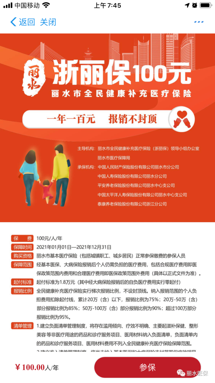 “浙丽保”全民健康补充医疗保险是丽水市为切实解决群众“因病致贫、因病返贫”问题,按“政府主导、公益运行、商保承办、自负盈亏”的原则设立的纯公益补充医疗保险。“浙丽保”是政府主导的纯公益补充医疗保险,是对基本医疗保险的有力补充。