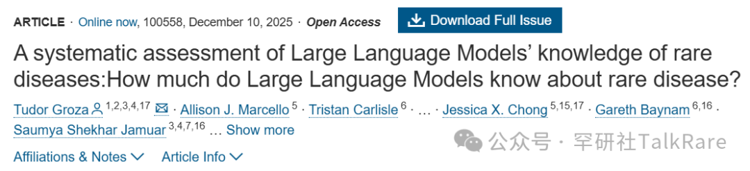 大语言模型(LLMs)在通用医学(general medical)基准测试中表现优异,但其针对罕见病的推理能力尚未明确。