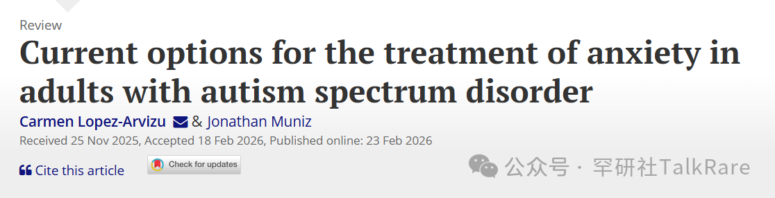 综述范围:本篇专家综述探讨了自闭症成人焦虑障碍的临床评估与循证药物治疗。