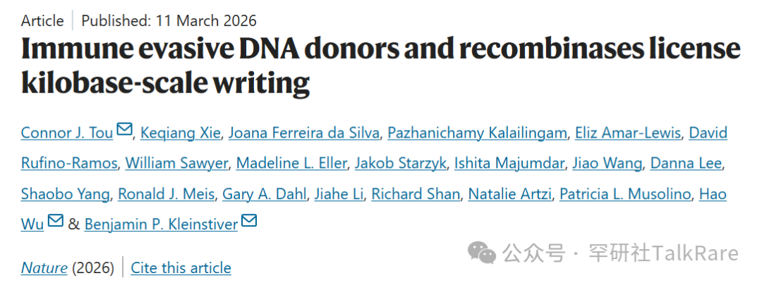 在发表于《自然》的新研究《免疫逃逸型 DNA 供体与重组酶实现千碱基级基因写入》中,克莱因斯蒂弗团队与 Full Circles Therapeutics 合作,开发出一种环状单链 DNA(ssDNA)供体,可实现 kb 级整合,且对细胞无毒。