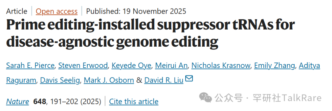 刘如谦团队并未递送 tRNA,而是使用先导编辑(prime editing)—— 一种基于 CRISPR、可精准实现靶向 DNA 改变的基因组编辑技术 —— 将抑制型 tRNA 基因永久整合进基因组。