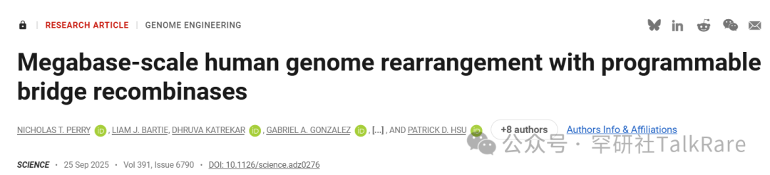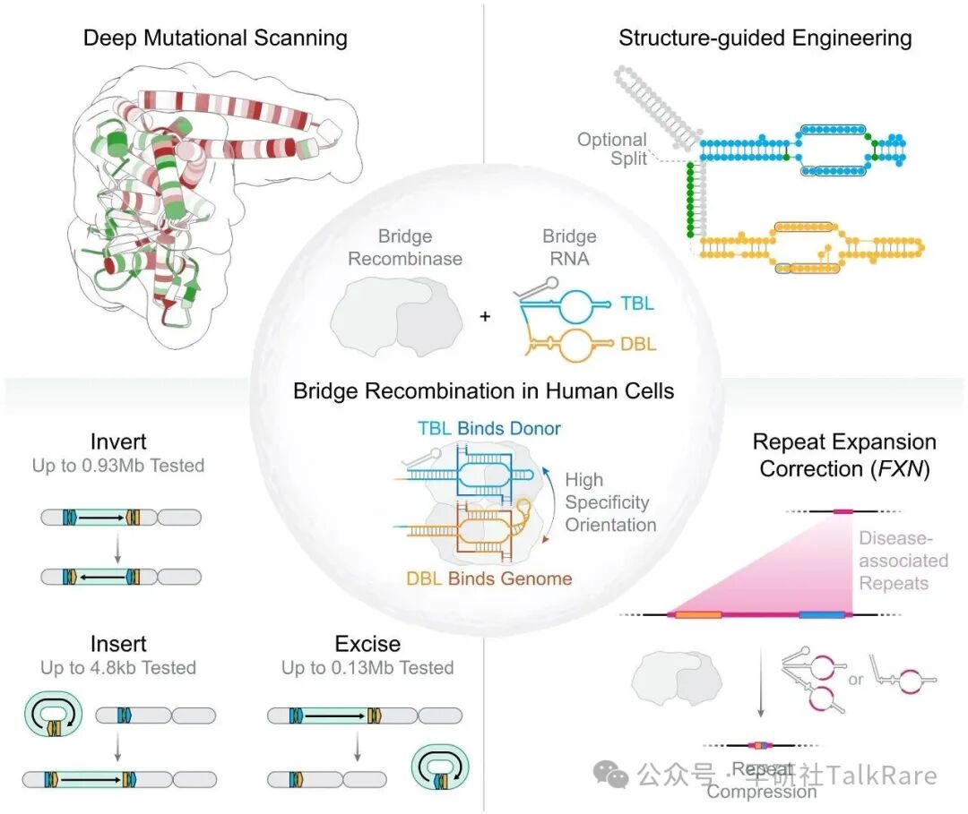 图:开发用于人类细胞中 Mb 规模基因组重排的桥接重组酶(引自:PMID: 40997214)