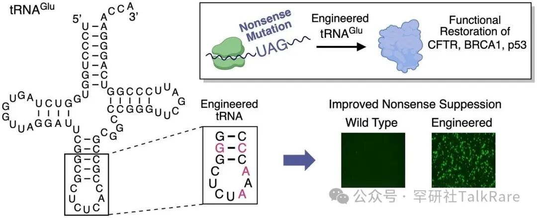 图:一种用于有效抑制致病性无义突变的工程化谷氨酸tRNA(引自:PMID: 40539513)